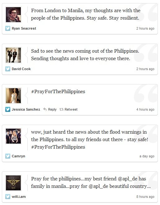 Even Hollywood celebrities and personalities alike sends their love and prayer for the Philippines thru Twitter.
